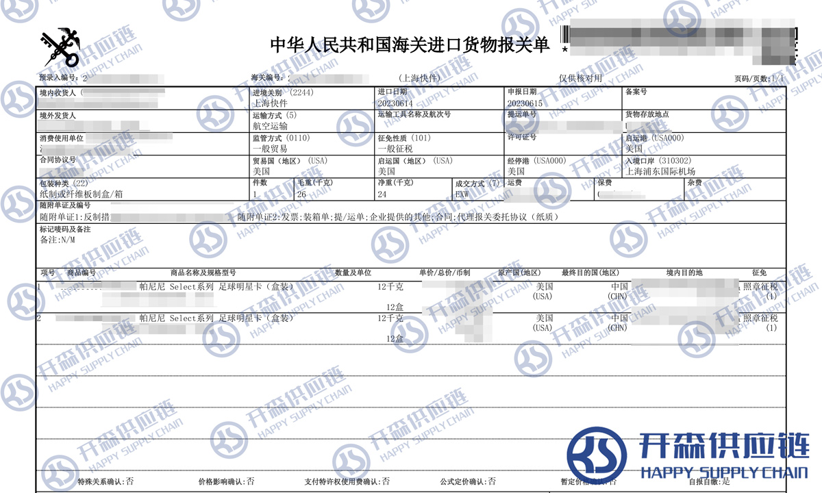 【本文結語】 上述就是上海機場球星卡進口報關代理服務【清關案例】的全部內(nèi)容,希望能對您有所幫助,如有球星卡進口報關上任何疑問及問題可隨時在線聯(lián)系我們或撥打 18002611553,開森供應鏈擁有豐富的球星卡進口報關操作經(jīng)驗及案例,10余年進口經(jīng)驗為您所用,各類進口疑難都能為您一一解答及協(xié)助快速處理解決!